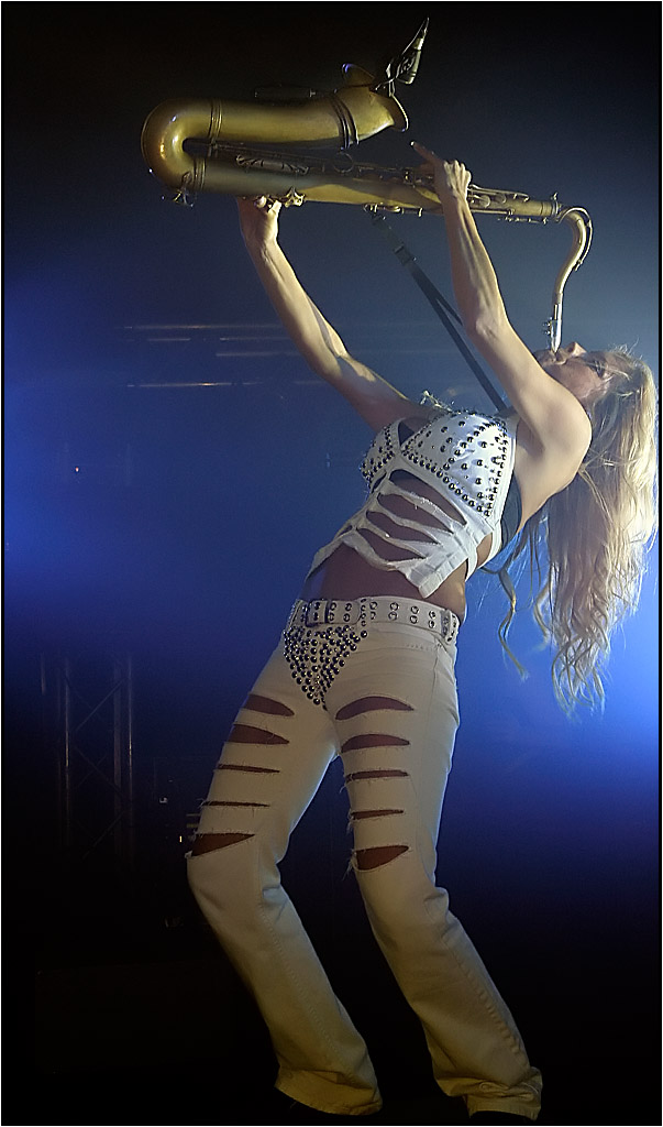 Malin Quick är spektakulär saxofonist/vokalist i rockbandet R&Q.